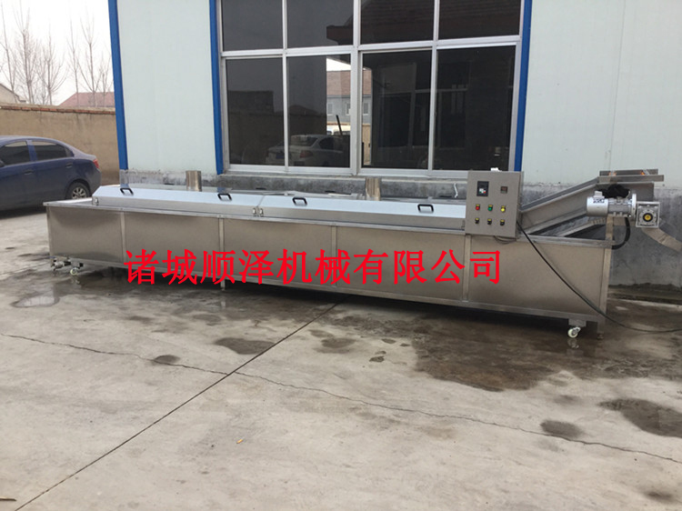 漂燙段保溫層有效的保證熱源的利用,減少熱損耗,節(jié)約能源成本。冷卻段為自然水冷卻,邊進(jìn)邊出能快速降溫,保證產(chǎn)品質(zhì)量跟口感度。