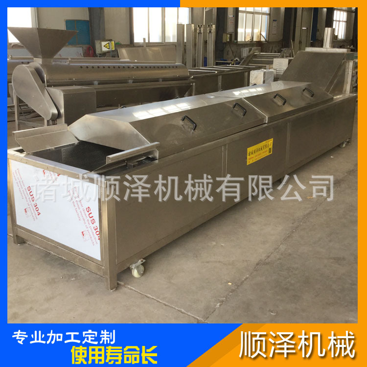 大型黃桃漂燙機 蔬菜預煮護色漂燙機整機設計為獨立內膽結構,外形框架焊接而成,結實耐用,增長設備使用壽命。內膽結構的優點首先便于清洗,保證設備的清潔度。其次網帶不受框架限制,那怕較嚴重的碰撞受損,也不影響網帶的輸送。漂燙段保溫層厚度為5公分。有效的保證熱源的利用,減少熱損耗,節約能源成本。冷卻段為自然水冷卻,邊進邊出能快速降溫,保證產品質量跟口感度。整機304不銹鋼制作,漂燙機集熱燙、冷卻于一體,無壓操作,安全可靠。順澤漂燙機主要用于果實、根莖類蔬菜及胡蘿卜、蘆筍、蘑菇、水果片等易碎產品的漂燙殺青,是速凍、脫水、凍干等預處理加工不可缺少的漂燙設備。