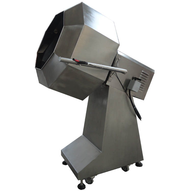 八角拌料機用于食品加工后期調味粉的攪拌或原料的裹粉包衣以及摻合用。結構簡單實用,桶體為不銹鋼八角型設計,避免了圓球拌料桶原料不翻動,拌料不均勻的高處。能在較短時間內使待加工食品物料與所需調料充分拌合均勻,自動傾斜把食品物料送出筒外。