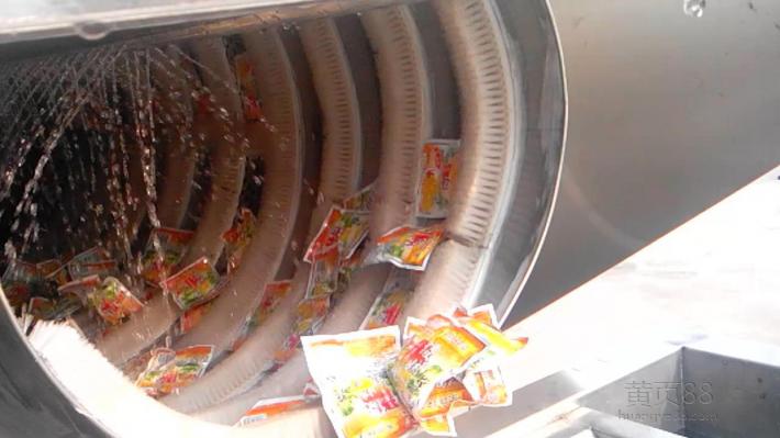 機體采用不銹鋼制造加工,洗袋機采用高壓噴淋+滾筒清洗,主要分為兩段,一段為加入清洗劑噴淋的去油污段,第二段為清洗凈洗段,適用于包裝物摺少的、污漬少的包裝袋使用。可跟風干設備對接,經過旋翻至振動撥料上機后輸送到軟包裝風干機上進行吹干,即可貼標裝箱。