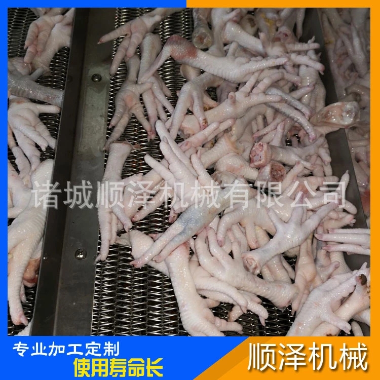 家禽等雞爪、雞腳表面有一層黃色的角質皮,這層皮需要先經過漂燙機漂燙一下,再通過雞爪脫皮機進行脫皮,順澤機械生產的臥式雞爪脫皮機脫皮速度快,去黃皮效果好。