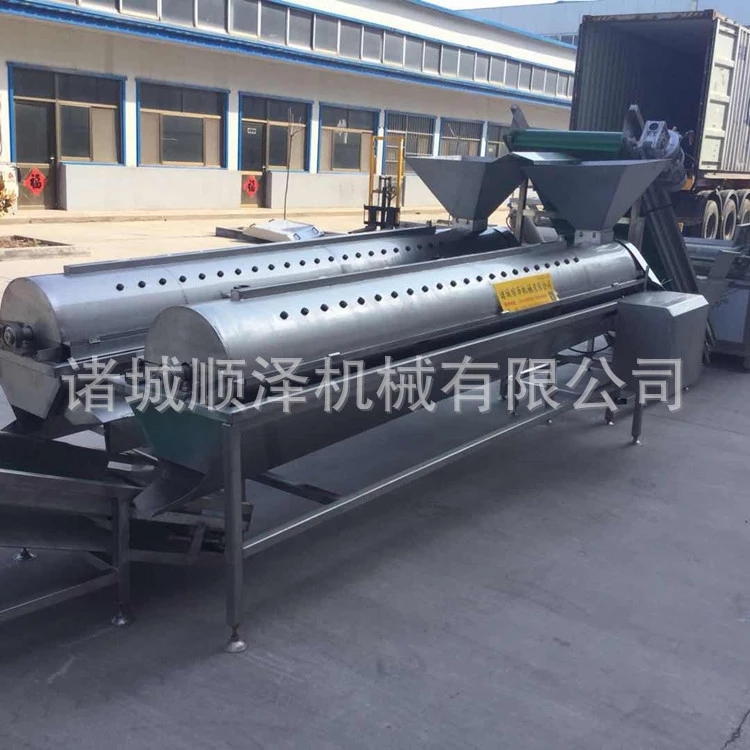 雞爪脫黃皮機器、臥式雞爪去黃皮加工流水線是順澤機械生產的設備,該設備采用主軸快速旋轉帶動主軸上的膠棒進行相對螺旋運動,推動禽爪在筒體內進行旋轉并前進,主軸膠棒的相對螺旋轉動與筒體長槽的相對螺旋實現反向,對前進中的禽爪形成反向作用力,以實現對禽爪的拍打、揉搓,使得禽爪表面的黃皮去掉,實現禽爪的去黃皮工作。工作時將上筒體的進水管路打開,以利于禽爪黃皮的脫落,并將下托板內的進水管路打開,以利于進入下托板的禽爪黃皮順利掉出。