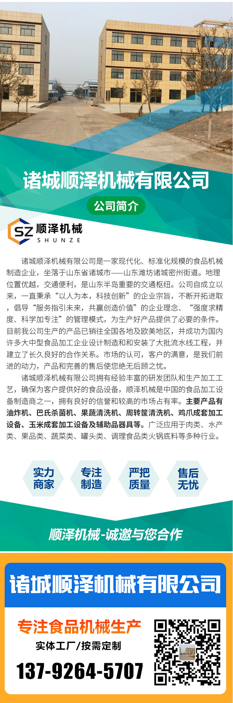 歡迎訪問"諸城順澤機械有限公司"網(wǎng)站,我公司是一家現(xiàn)代化、標(biāo)準(zhǔn)化規(guī)模的食品機械制造企業(yè),歡迎客戶前來參觀考察。159-6615-1277