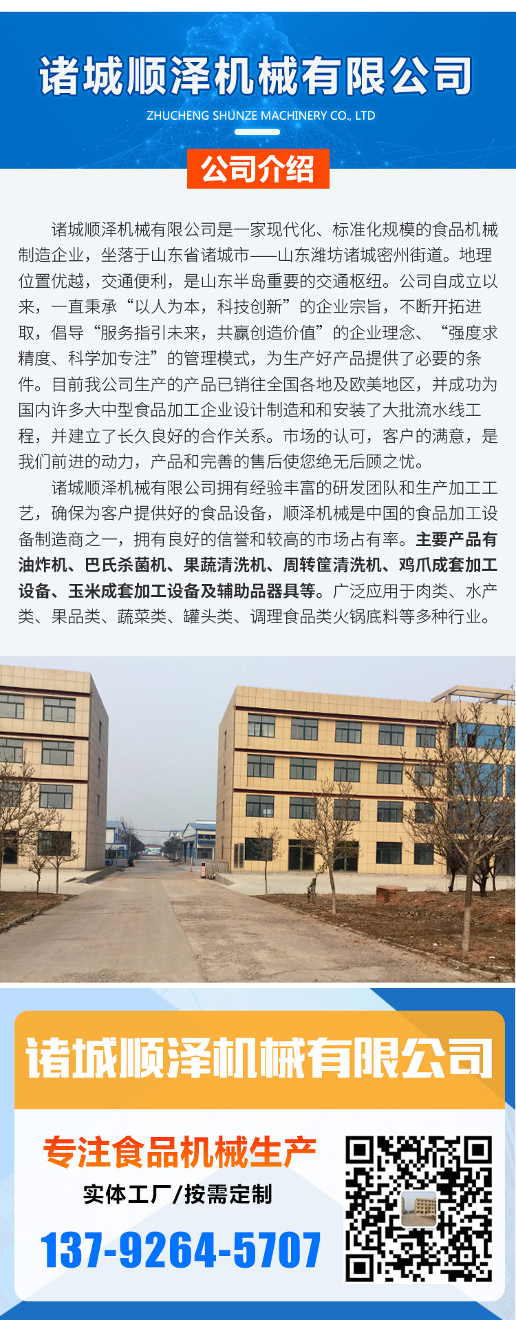 歡迎訪問"諸城順澤機械有限公司"網站,我公司是一家現代化、標準化規模的食品機械制造企業,歡迎客戶前來參觀考察。159-6615-1277